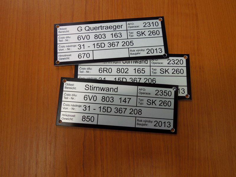 [:de]Schilder aus eloxierten Alu[:sk]Štítky z eloxovaného hliníku[:]